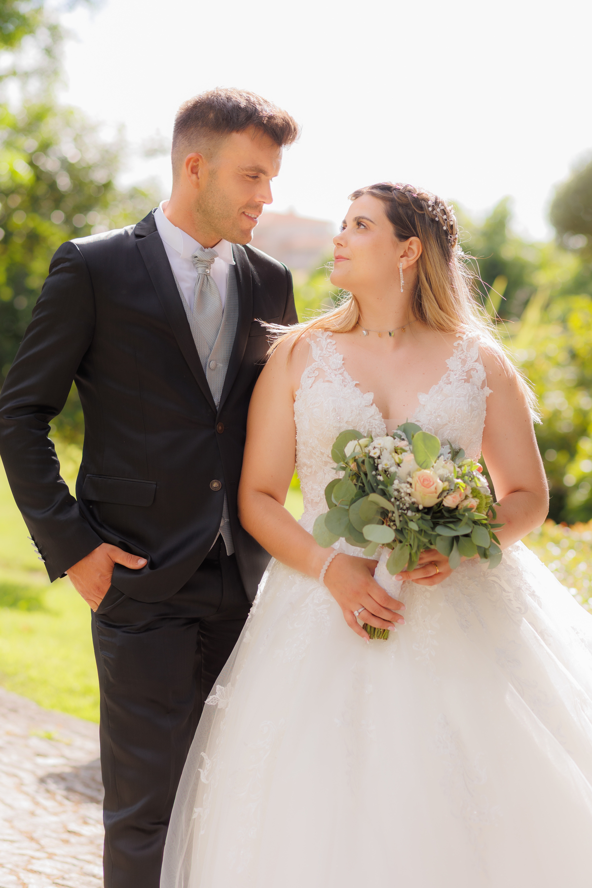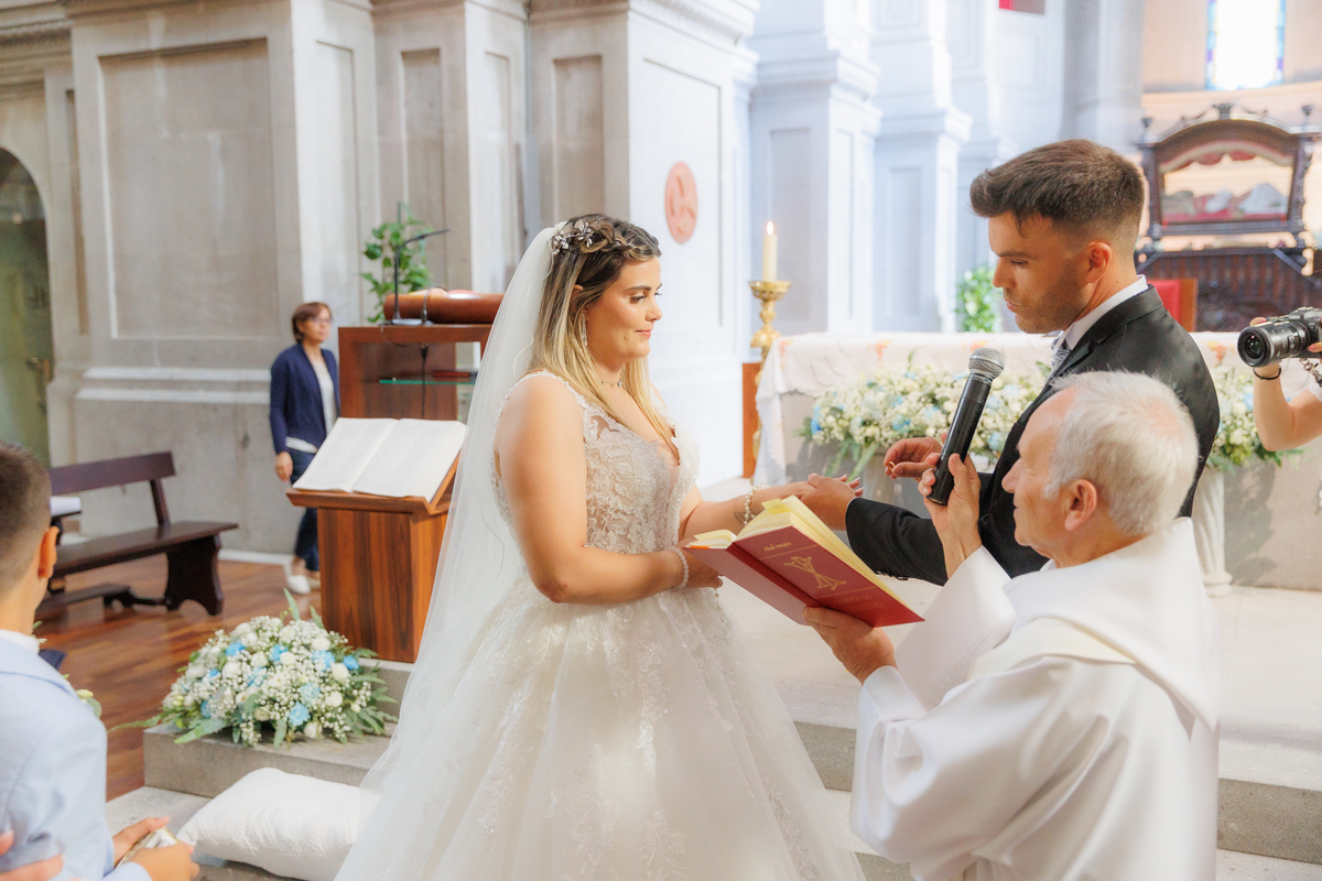 O casamento da Cristiana e do David foi realizado num dia com bastante sol.