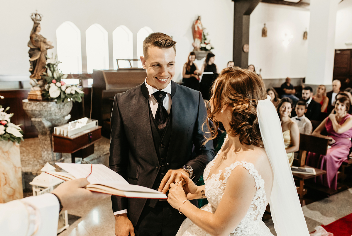 A cerimónia religiosa decorreu na igreja de S. Claudio de Barco, decorada a rigor com uns arranjos de flores muito lindos.